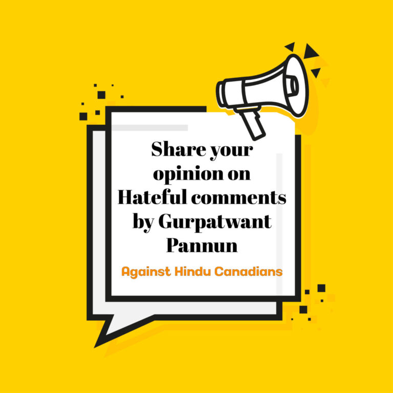VHP Canada urges all Hindus living in the country to stay calm but vigilant to this hateful threat. We are also requesting all Hindu Canadians to share their opinion on this Hateful and Threatening incident. Your point of view submitted herein will be used to advocate for the Hindu community in Canada and facilitate sharing with concerned authorities, if and where appropriate. Here is the link to the survey:
